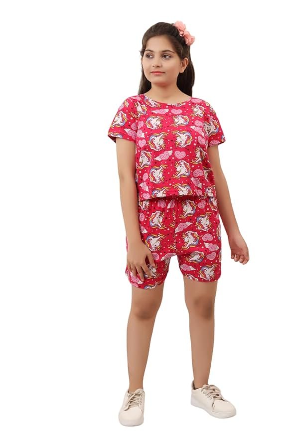 Fabric : 100% Pure Cotton . Super soft hosiery Cotton Fabric. Keeps your little one body fresh and cool. Light weight fabric, Short-regular sleeves t-shirt. Perfect combo set for daywear , Night wear , casual family outing. Size available from 6 - 8 years , 8 -10 years , 10 - 12 years , 12 -14 years and 14-16 years
